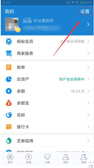 2、在我的界面,右上角有“设置”点击进入。