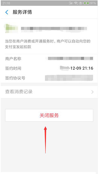 6、最后出现“关闭服务”继续解约后就解除了,就不在自动续费了。