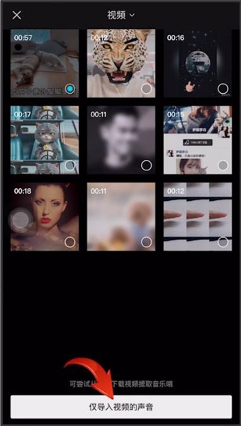 选择要提取音乐的视频,点击【仅导入视频的声音】即可。