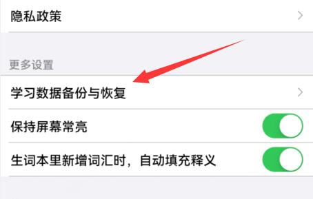 2、然后在更多设置里找到“学习数据备份与恢复”