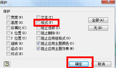 5、最后在“保护”界面就可以取消“格式”勾选,点击“确定”即可,根据需求勾选。
