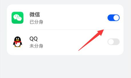 4、最后点开应用开关,就可以双开了。