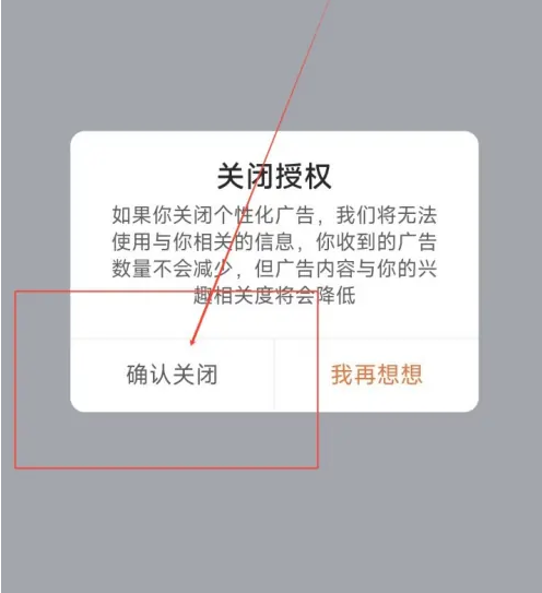 在弹出的小窗口中点击“确认关闭”,即可完成关闭加油个性化广告功能成功