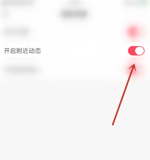 “开启附近动态”后面的圆点变为红色即表示启用Yo交友开启附近动态成功