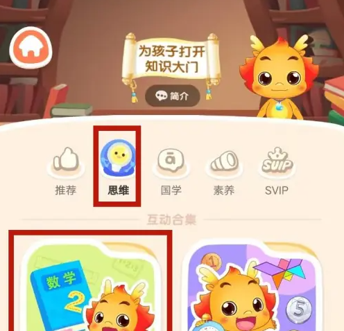 学堂页面,选择查看思维启蒙分类。