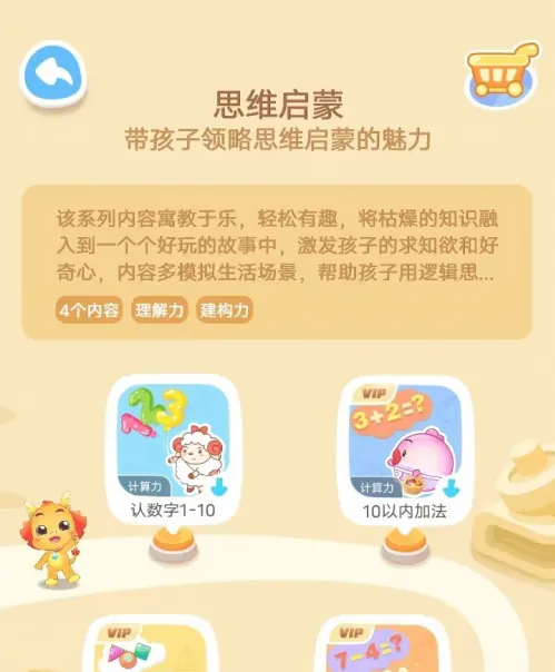 思维启蒙页面,根据提示做游戏,提交小伴龙完成启蒙。
