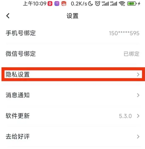 点击《隐私设置》选项进入。
