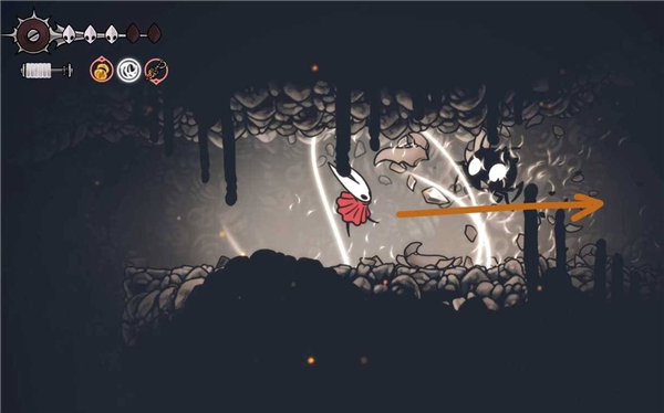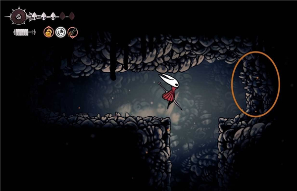 到达顶部后,破坏右侧墙壁进入新区域,这里有一只骷髅小怪,击败之后继续往右走。