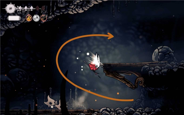 注意右侧上方通道,需要用蛛攀术才能进入熔岩湖上方的隐藏区域。