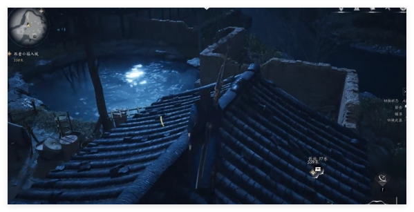 9、水池里的钱袋子需要大家去沿着水池走一圈,用摄星取月就可以获取水里面的钱袋子。