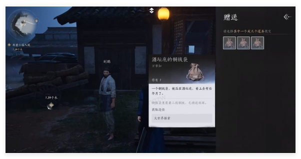 8、进入到院子里可以去鸡窝里和酒坛下拿到两个钱袋子。