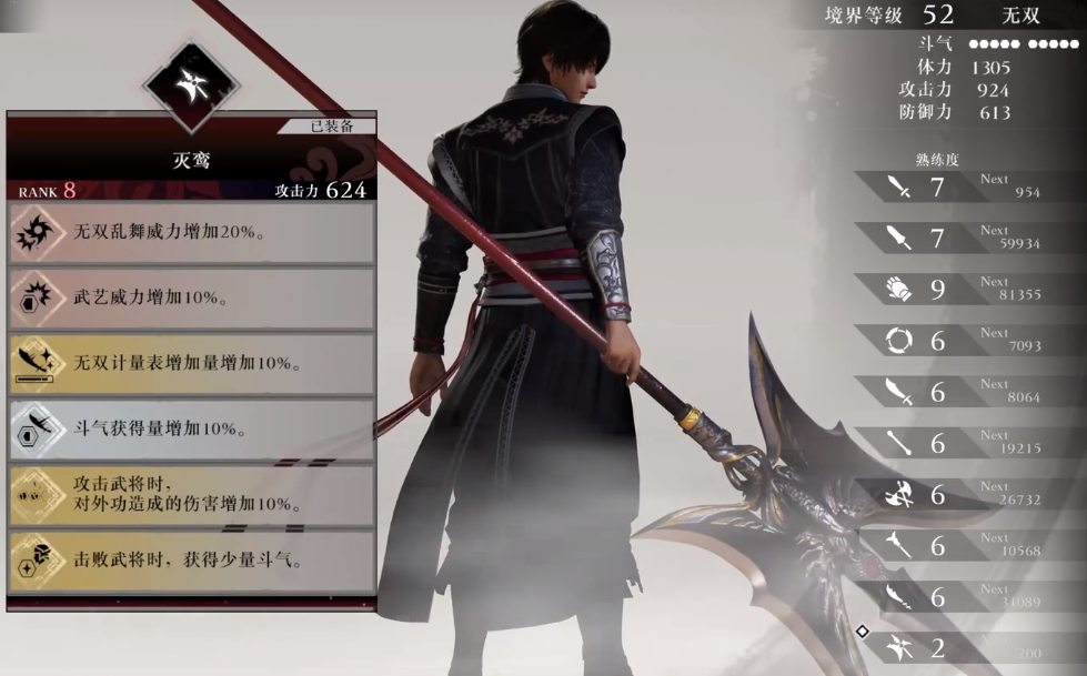 装备推荐选自己最熟练的武器,武艺带这件武器的最高熟练度的技能,虽然费用高,但是伤害也高