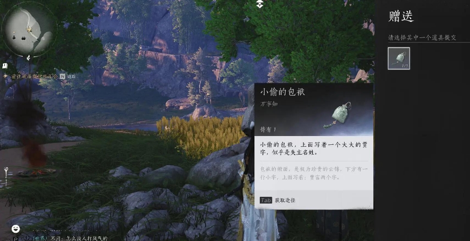3.使用摄星拿月从他包里获取“小偷的包袱”
