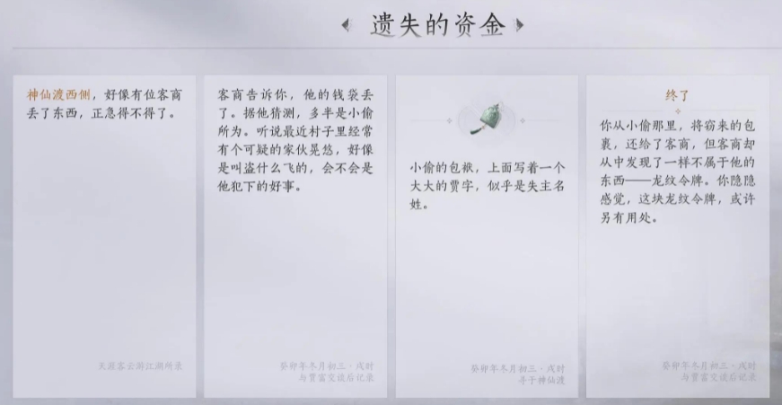 武林录探索-清河万事知-神仙渡·之四【遗失的资金】