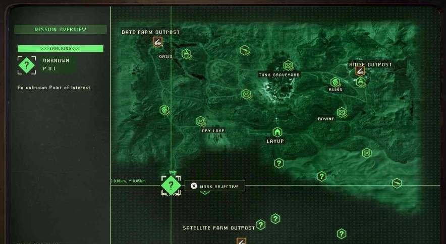 拿到战术地图后前往西南部的敌人营地,在营地中间的建筑里可以看到无线电,保险箱在楼上。