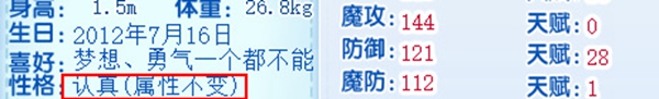 (2)魔攻144,它的天赋为0、防御121,它的天赋为28、魔防112,它的天赋为1;