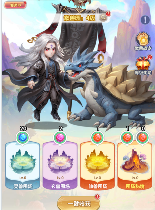豢兽园的围场可以产出灵兽之粮,灵兽之粮用于灵兽进阶。围场等级提升可以获得灵气值和提升灵兽之粮产出效率,提升豢兽园等级可以获得豢兽园等级奖励,豢兽园等级提升后也可以提升围场等级。