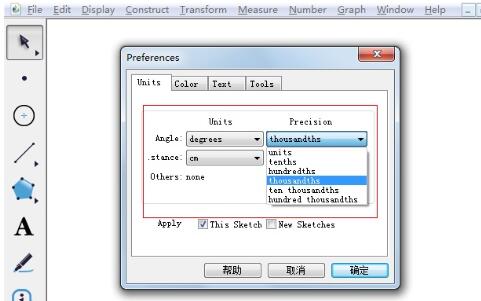 几何画板改变度量精确度的操作流程