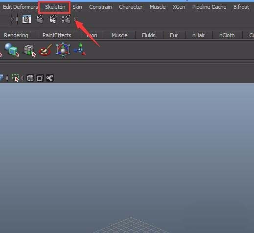 2、切换模式之后在菜单里找到skeleton选项,